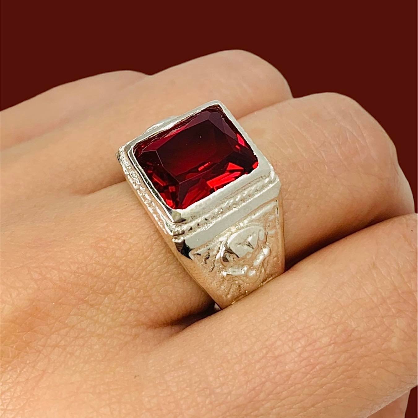 Anillo Sello Grande Cubic Rectangular Rojo con calaveras para hombre Plata 925