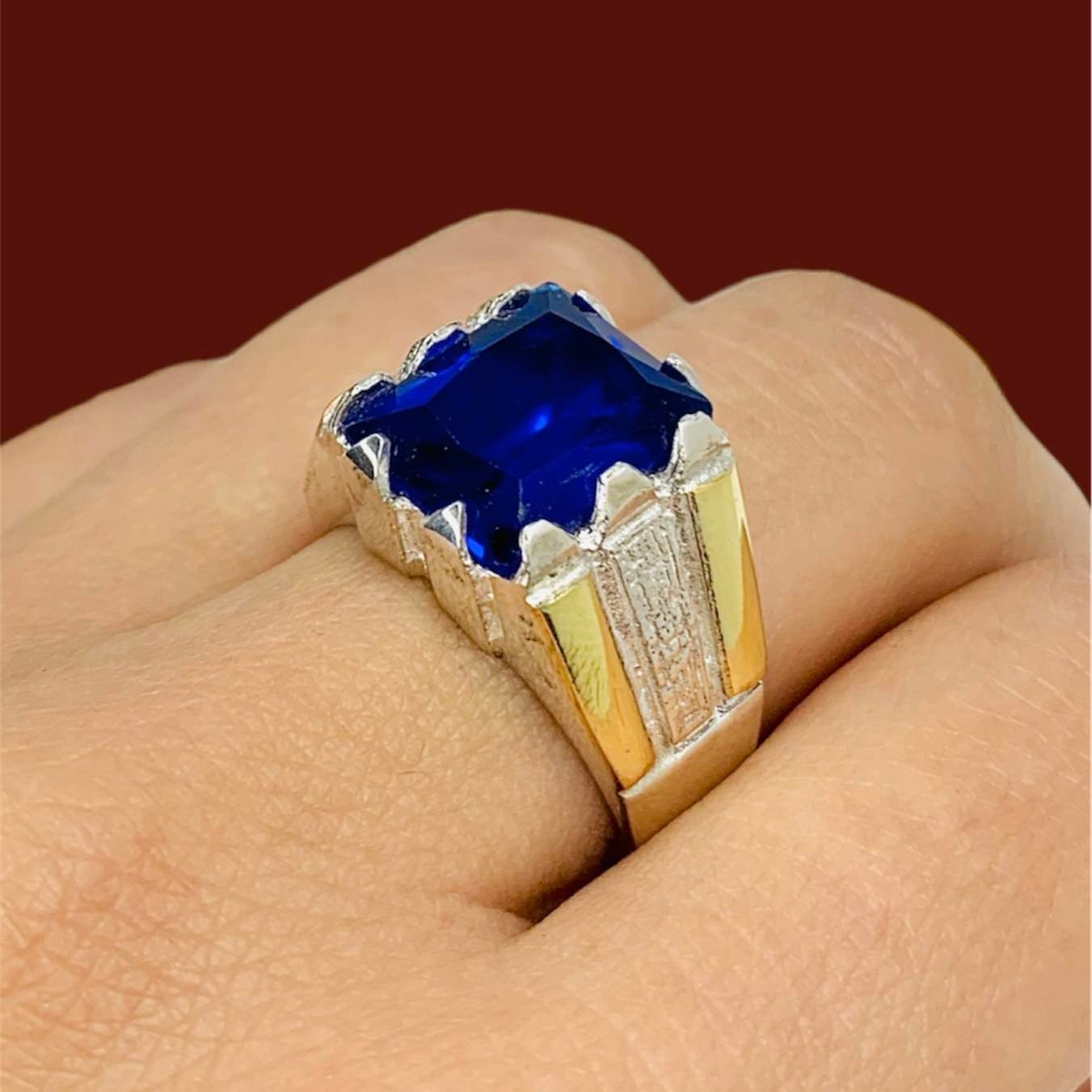 Anillo Leo Sello Grande para Hombre con cubic rectangular Azul Plata y Oro