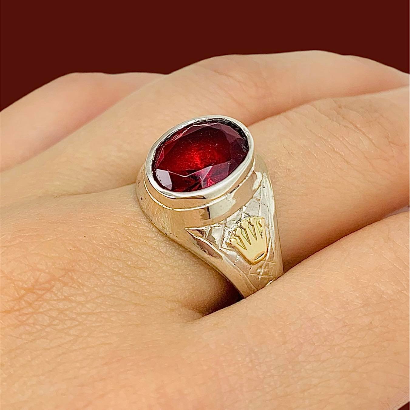 Anillo Sello Oval Grande rolex para Hombre cubic Rojo Plata y Oro