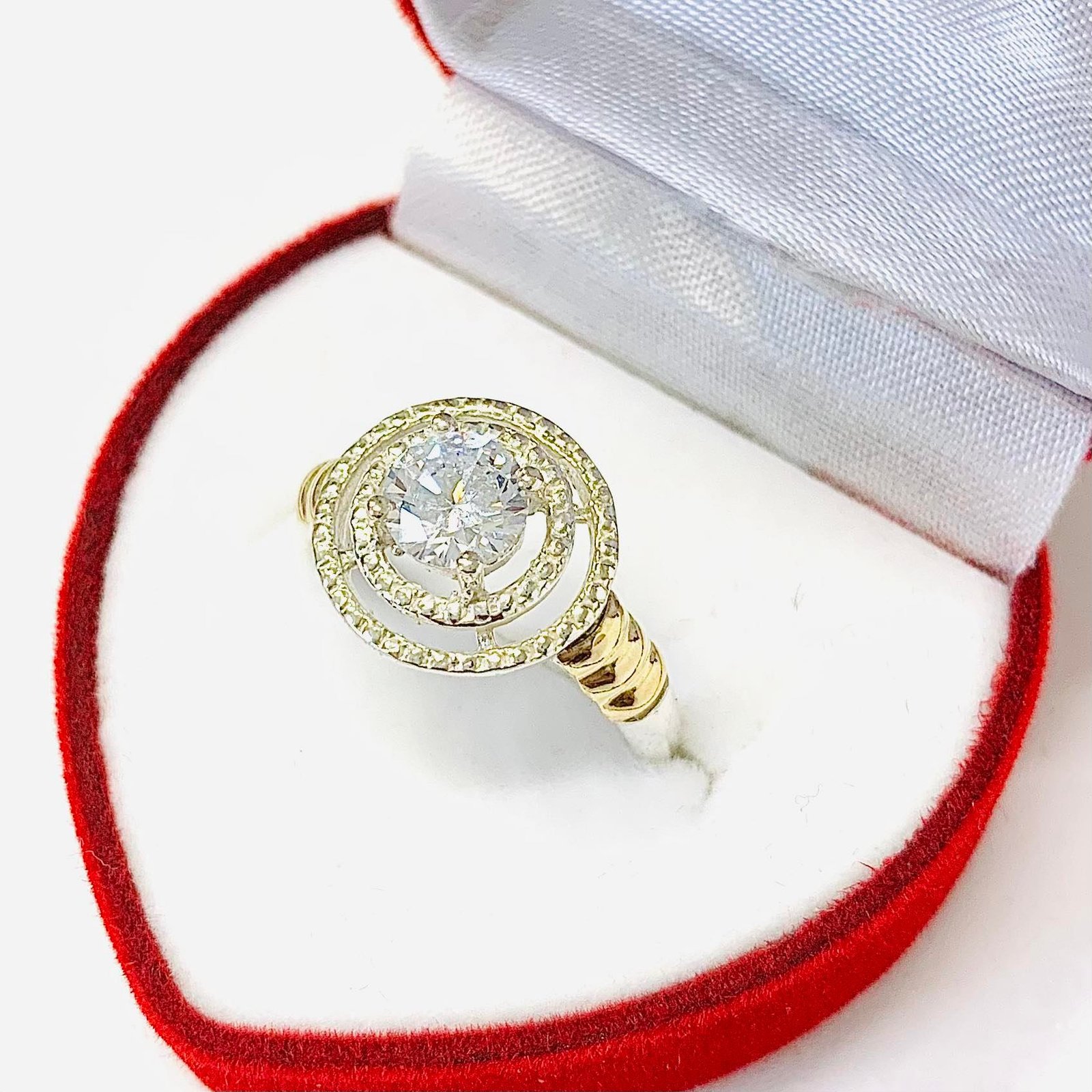 Anillo Coliseo con cubic Blanco de Plata y Oro