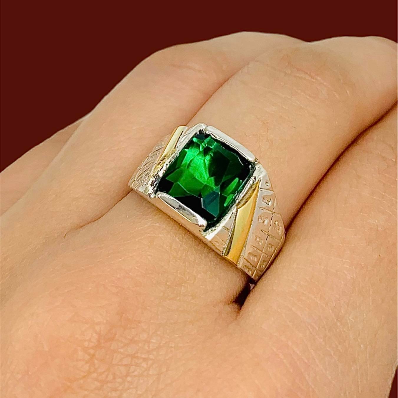Anillo Linea Oro diagonal cubic rectangular Verde para hombre Plata y Oro