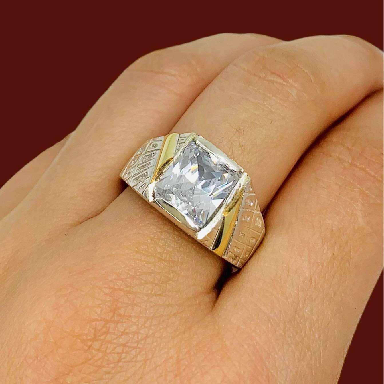 Anillo Linea Oro diagonal cubic rectangular Blanco para hombre Plata y Oro