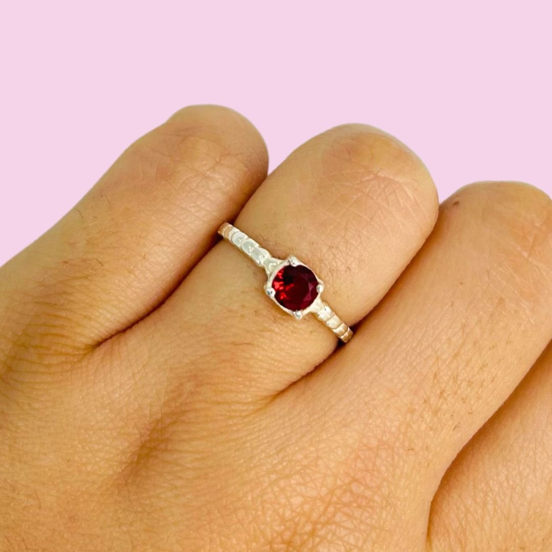 Anillo Solitario de Compromiso cubic Rojo de Plata 925