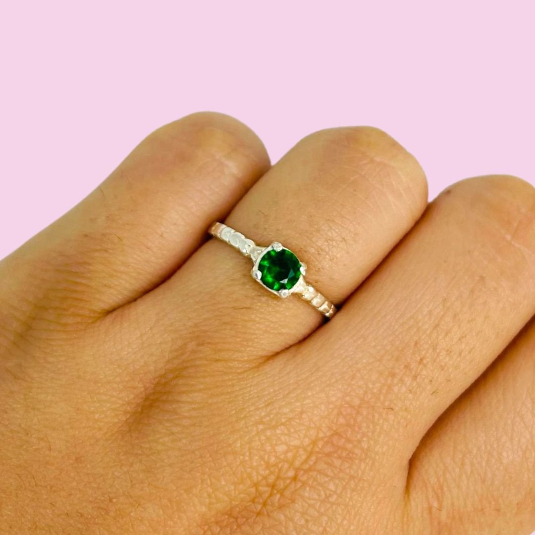 Anillo Solitario de Compromiso cubic Verde de Plata 925