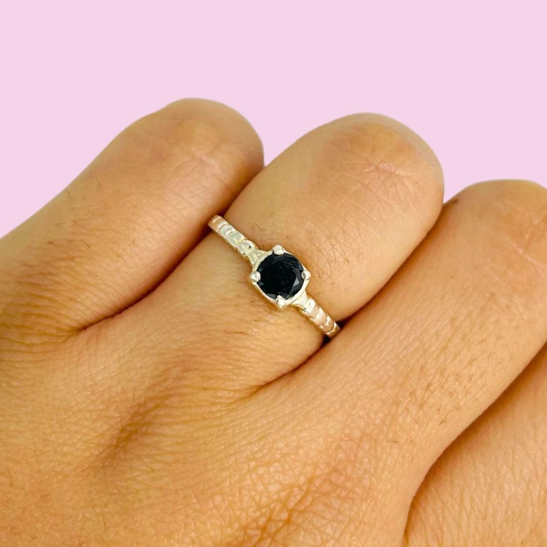 Anillo Solitario de Compromiso cubic Negro de Plata 925