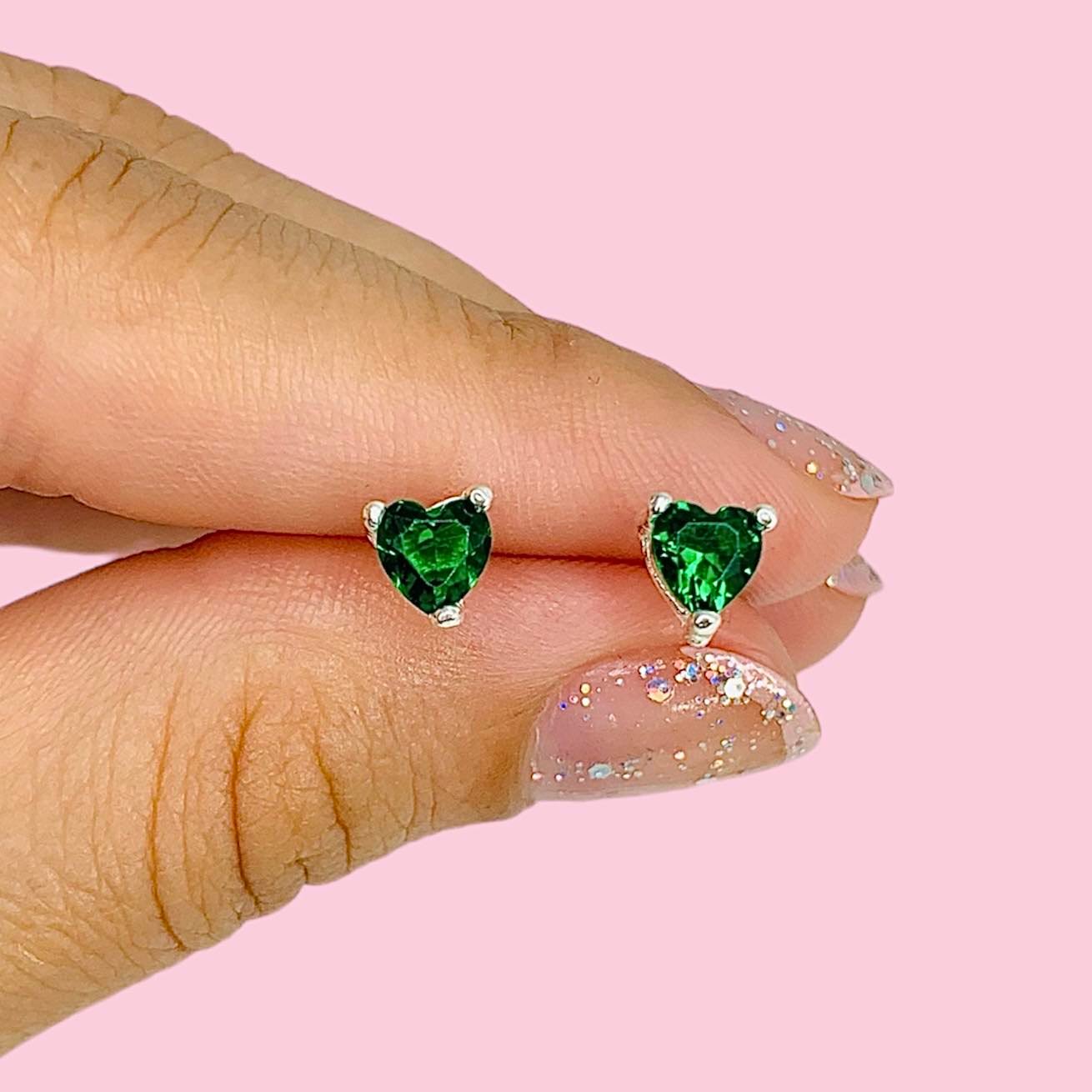 Aros Corazon Verde 5mm Plata 925