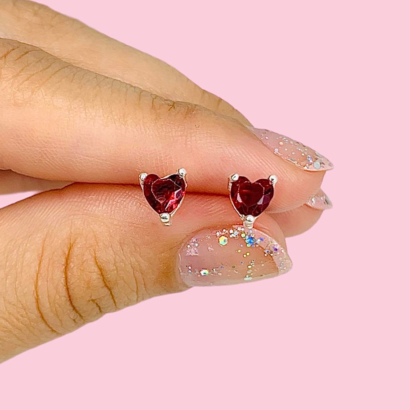 Aros Corazon Rojo 5mm Plata 925