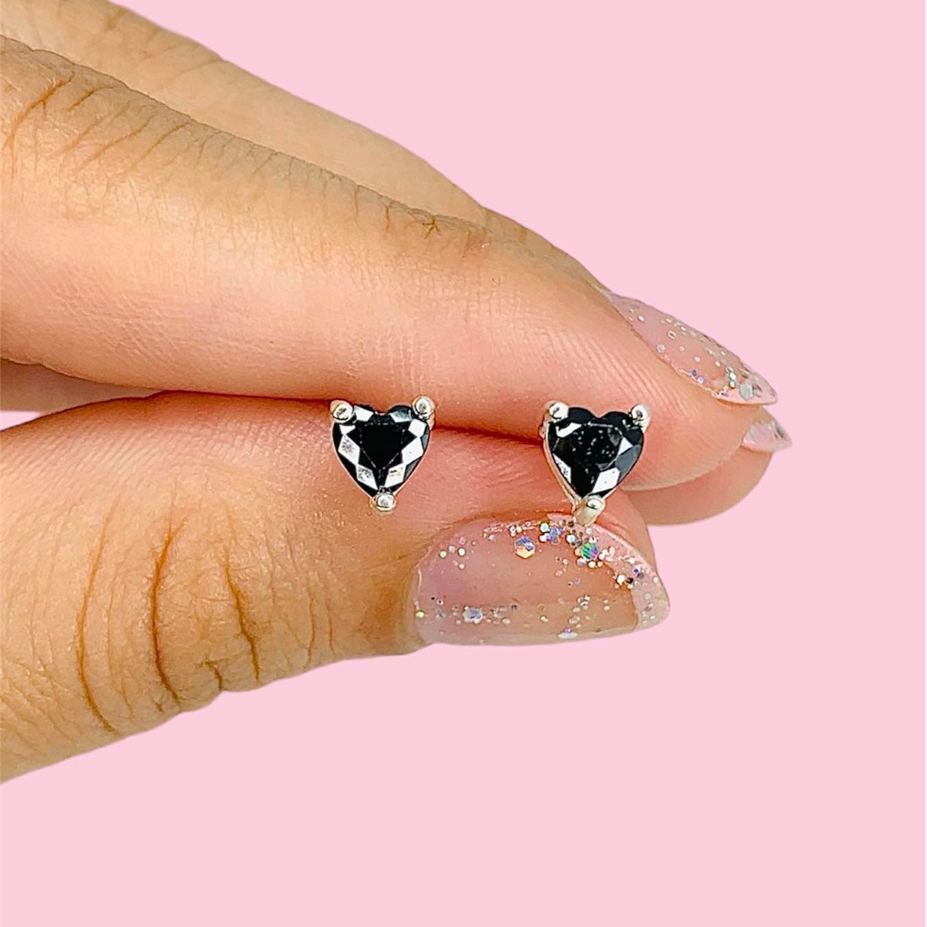 Aros Corazon Negro 5mm Plata 925