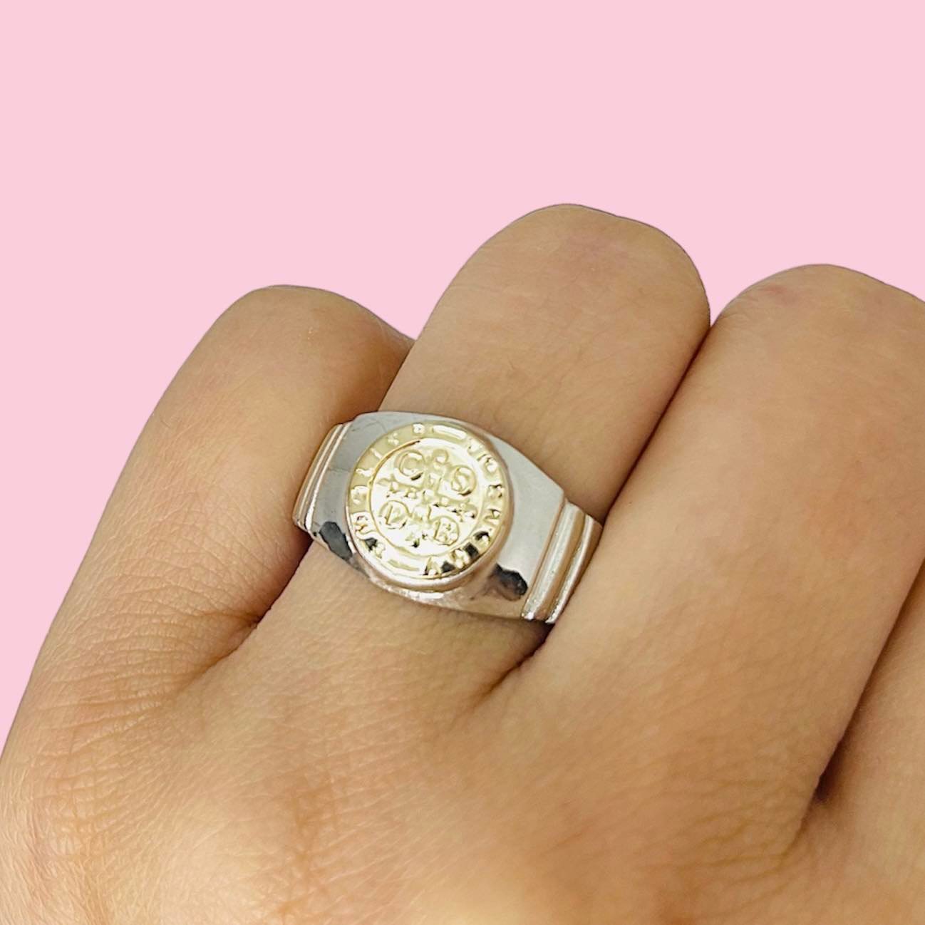 Anillo Sello San Benito Modelo Cinto de Plata y Oro