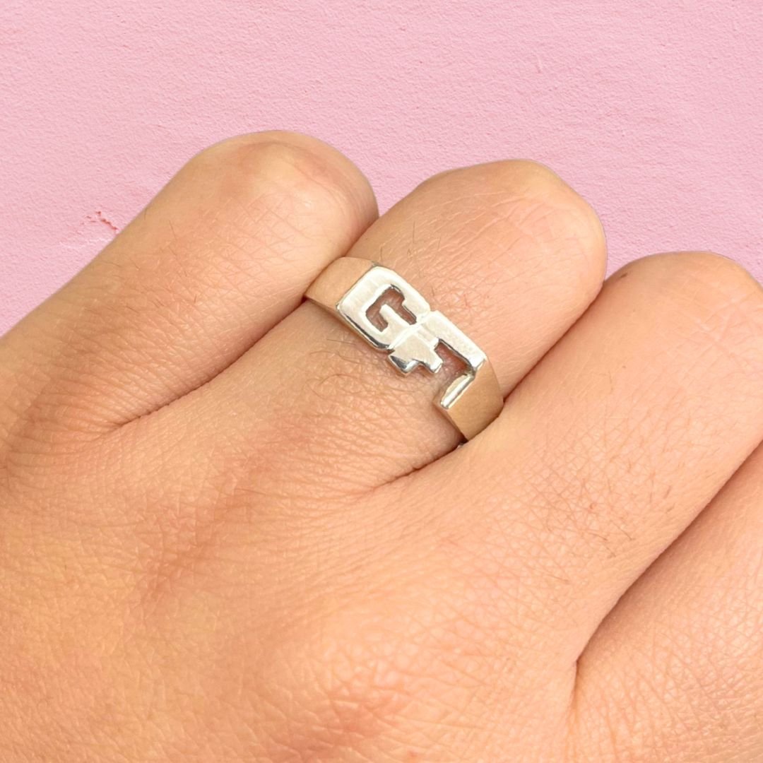 Anillo iniciales rectangular chico de Plata 925