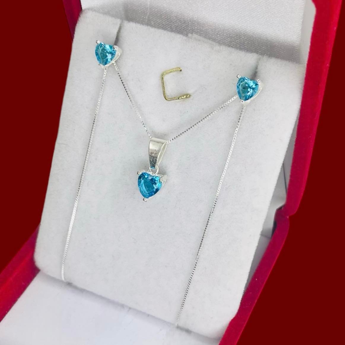Conjunto Cadena Veneziana dije y aros corazon Celeste de Plata 925
