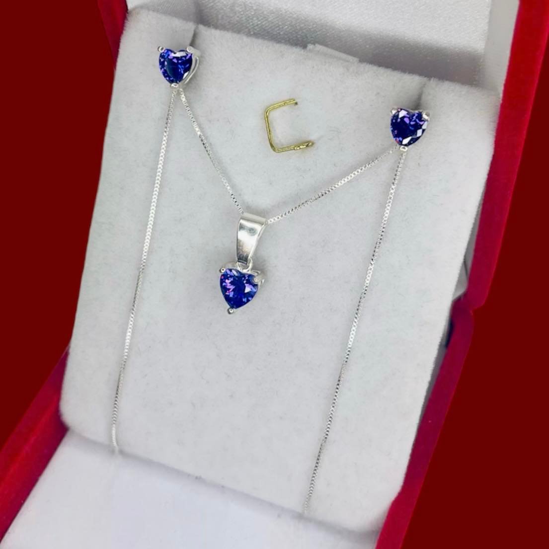 Conjunto Cadena Veneziana dije y aros corazon Violeta de Plata 925