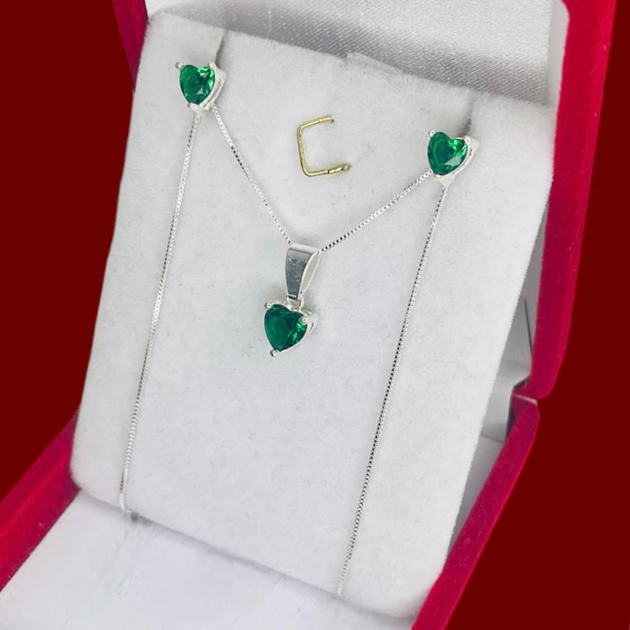 Artículo: KIT 159-6Conjunto Cadena Veneziana dije y aros corazon Verde