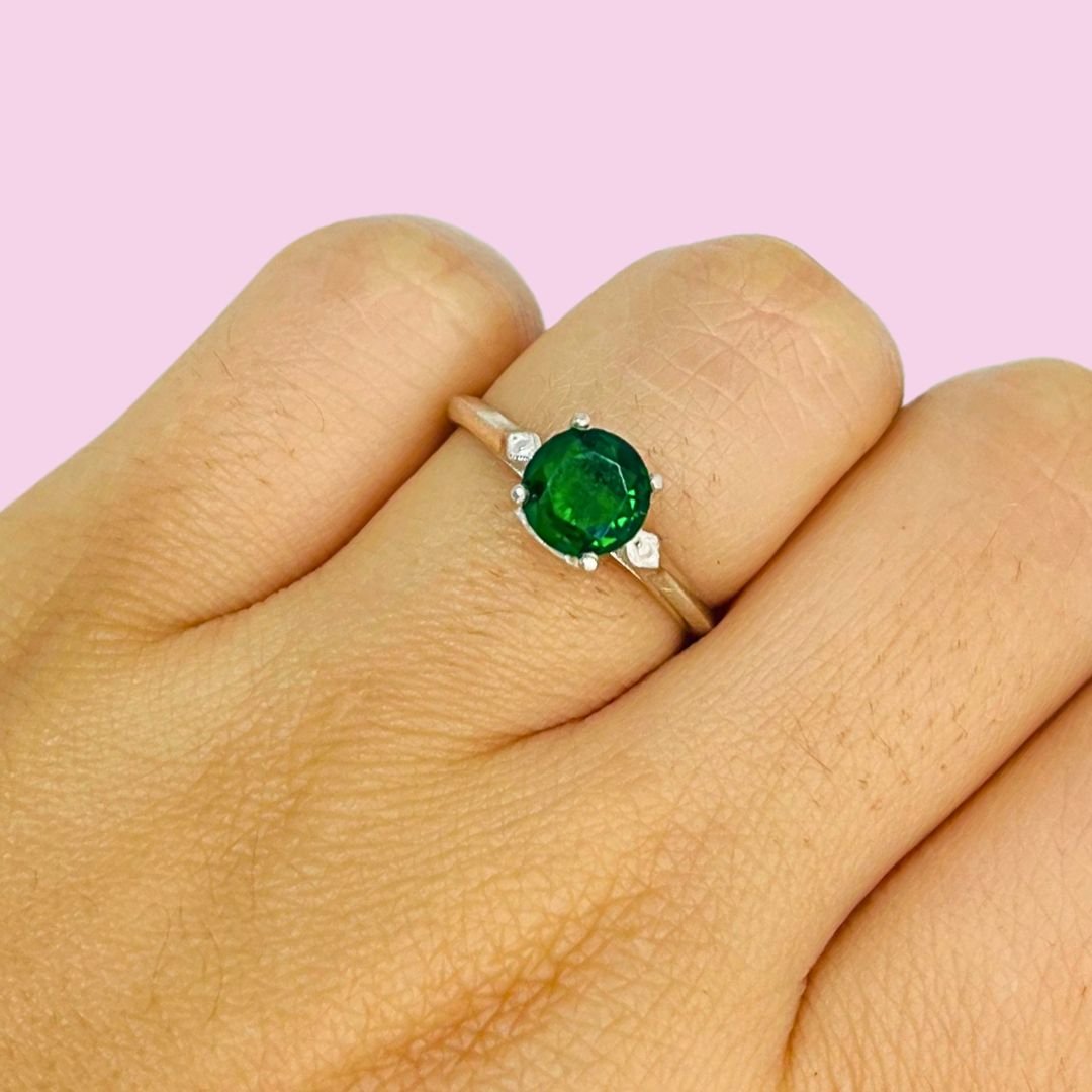 Anillo Tipo cintillo para matrimonio con cubic Verde de Plata 925