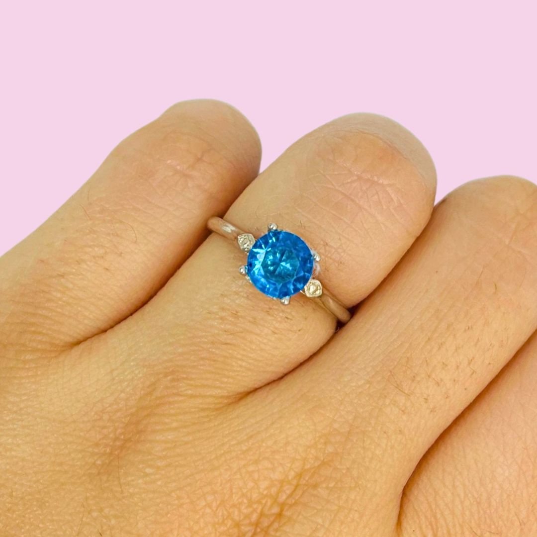 Anillo Tipo cintillo para matrimonio con cubic Celeste de Plata 925
