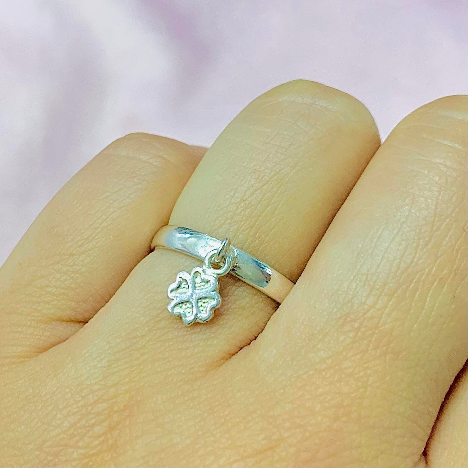 Anillo con dije de Trebol de plata 925