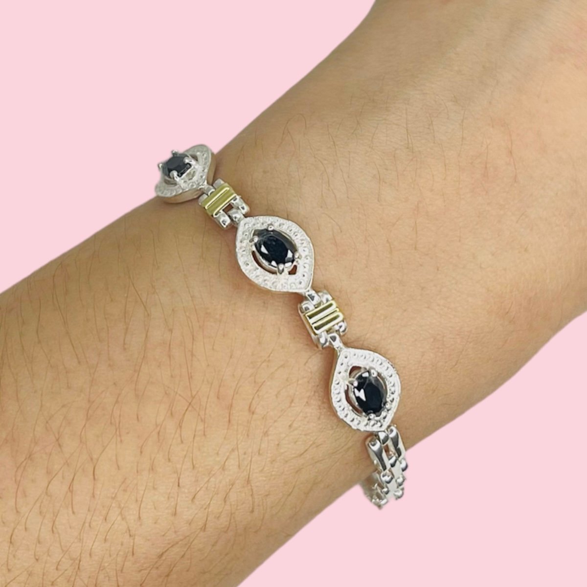 Pulsera Panter Pani Cubic Oval Negro de Plata y Oro