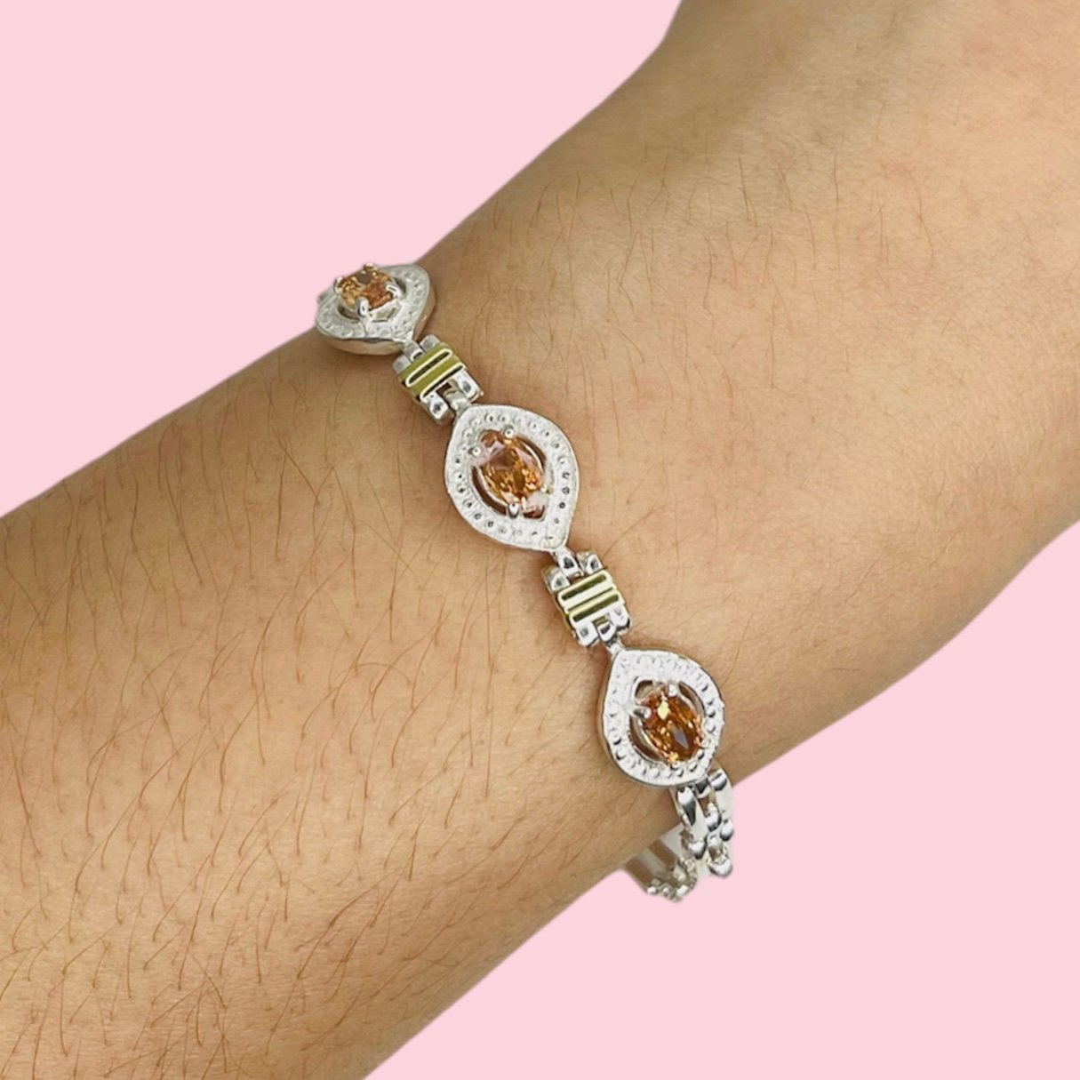 Pulsera Panter Pani Cubic Oval Ambar de Plata y Oro