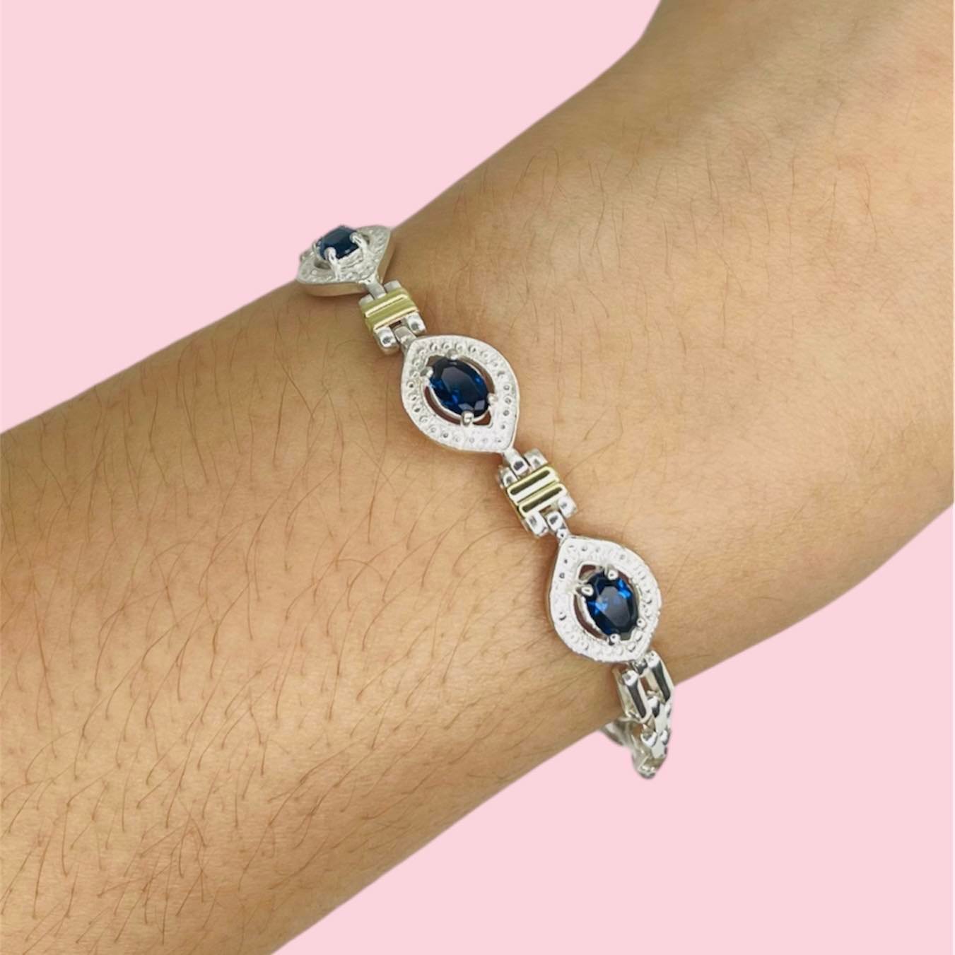 Pulsera Panter Pani Cubic Oval Azul de Plata y Oro