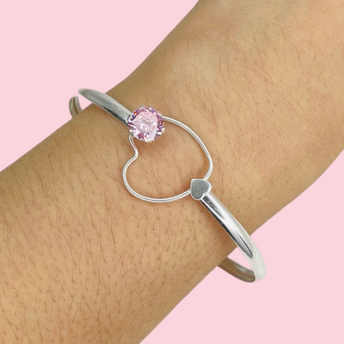 Esclava Corazon y Cubic 8mm Rosa de Plata