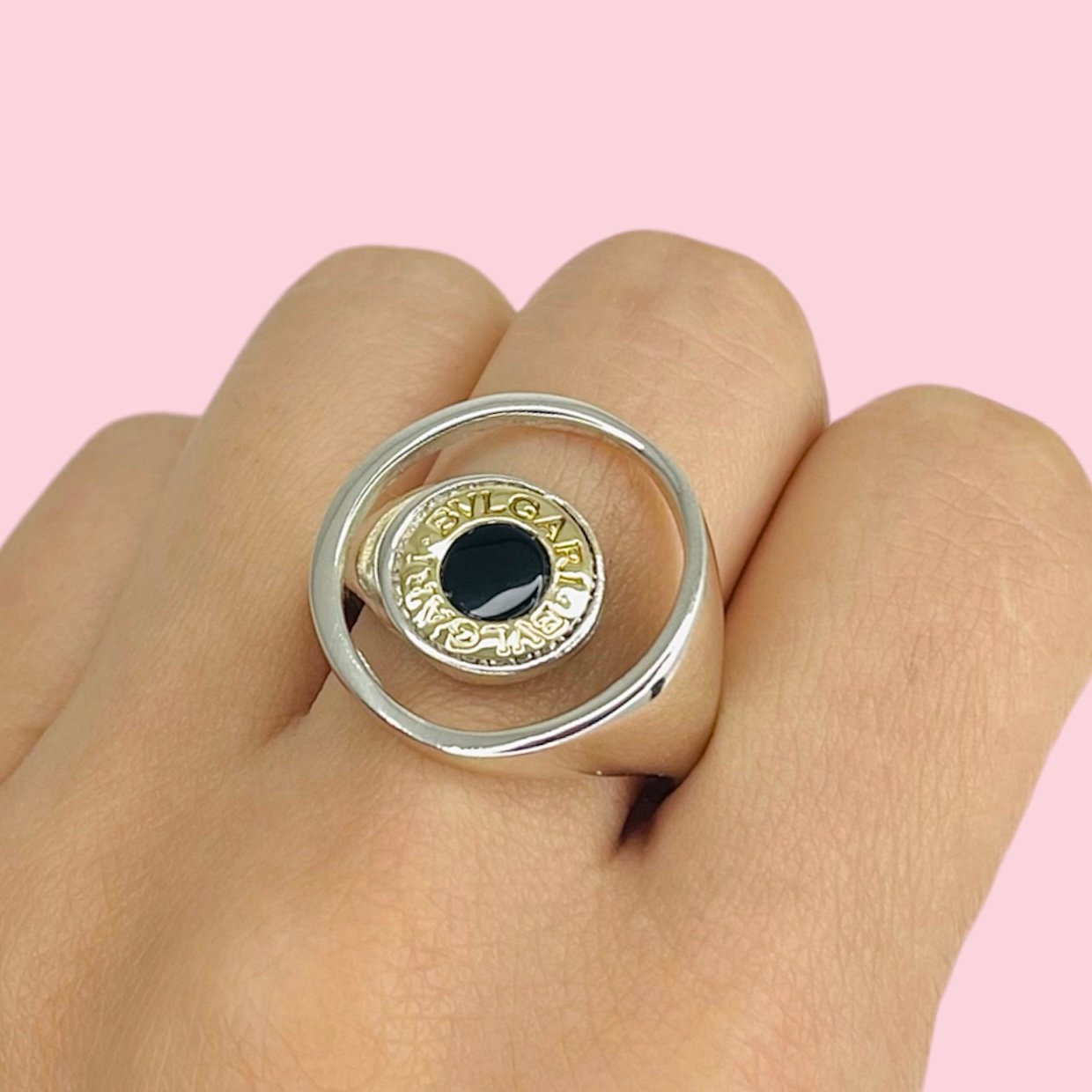 Anillo Bvl Orbitante con Onix de Plata y Oro