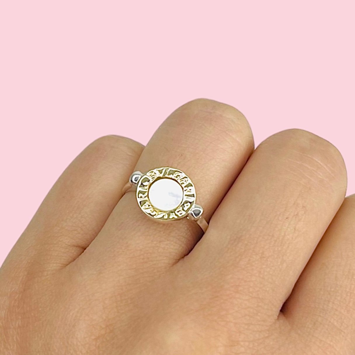 Anillo Bvl Sello chico con Nacar de Plata y Oro