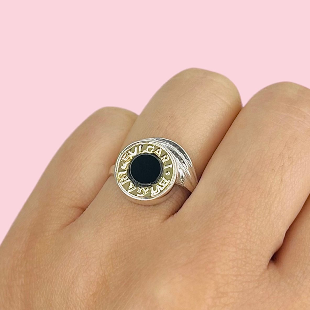 Anillo Bvl Sello Mediano con Onix de Plata y Oro