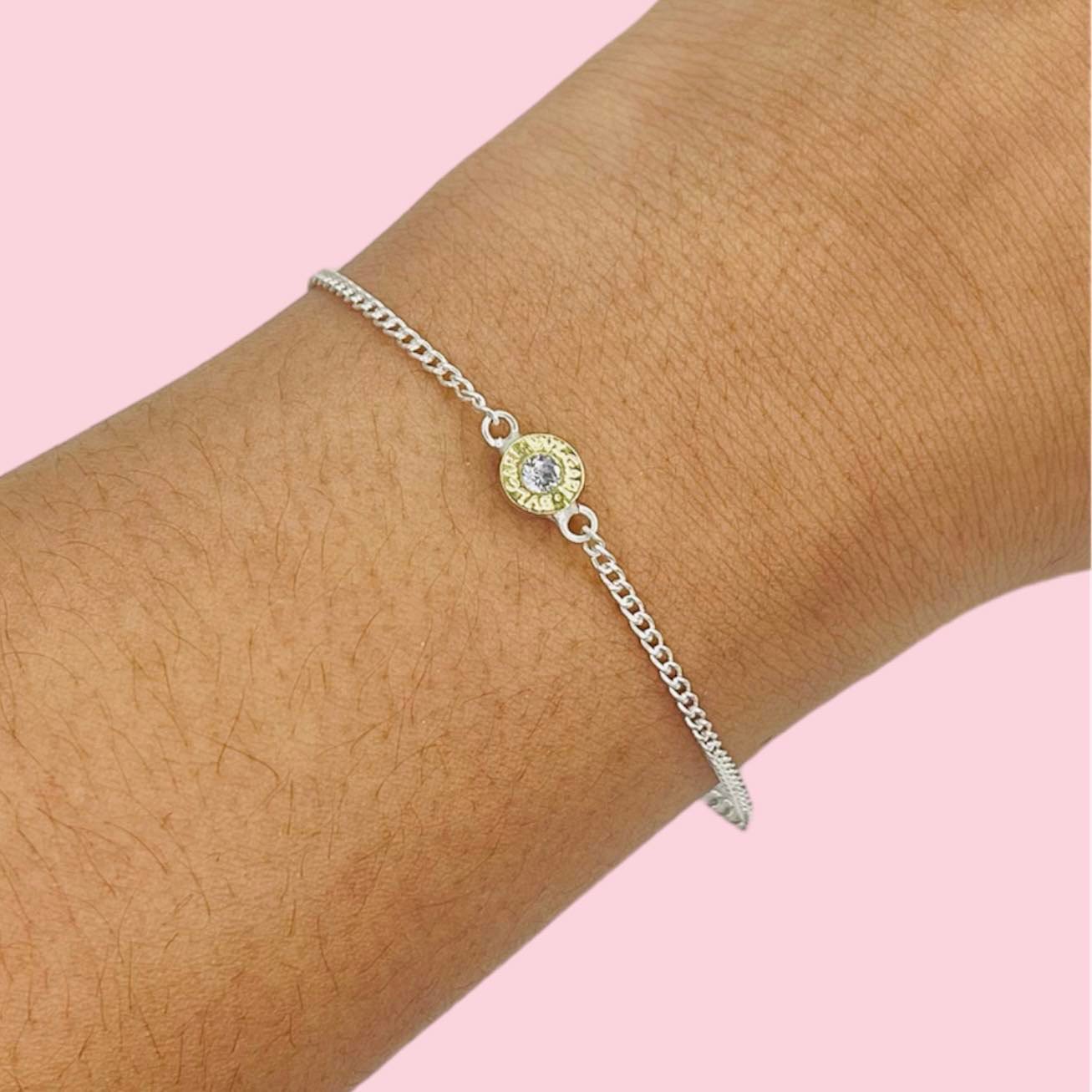 Pulsera Groumet Bvl redondo chico cubic Blanco Plata y Oro