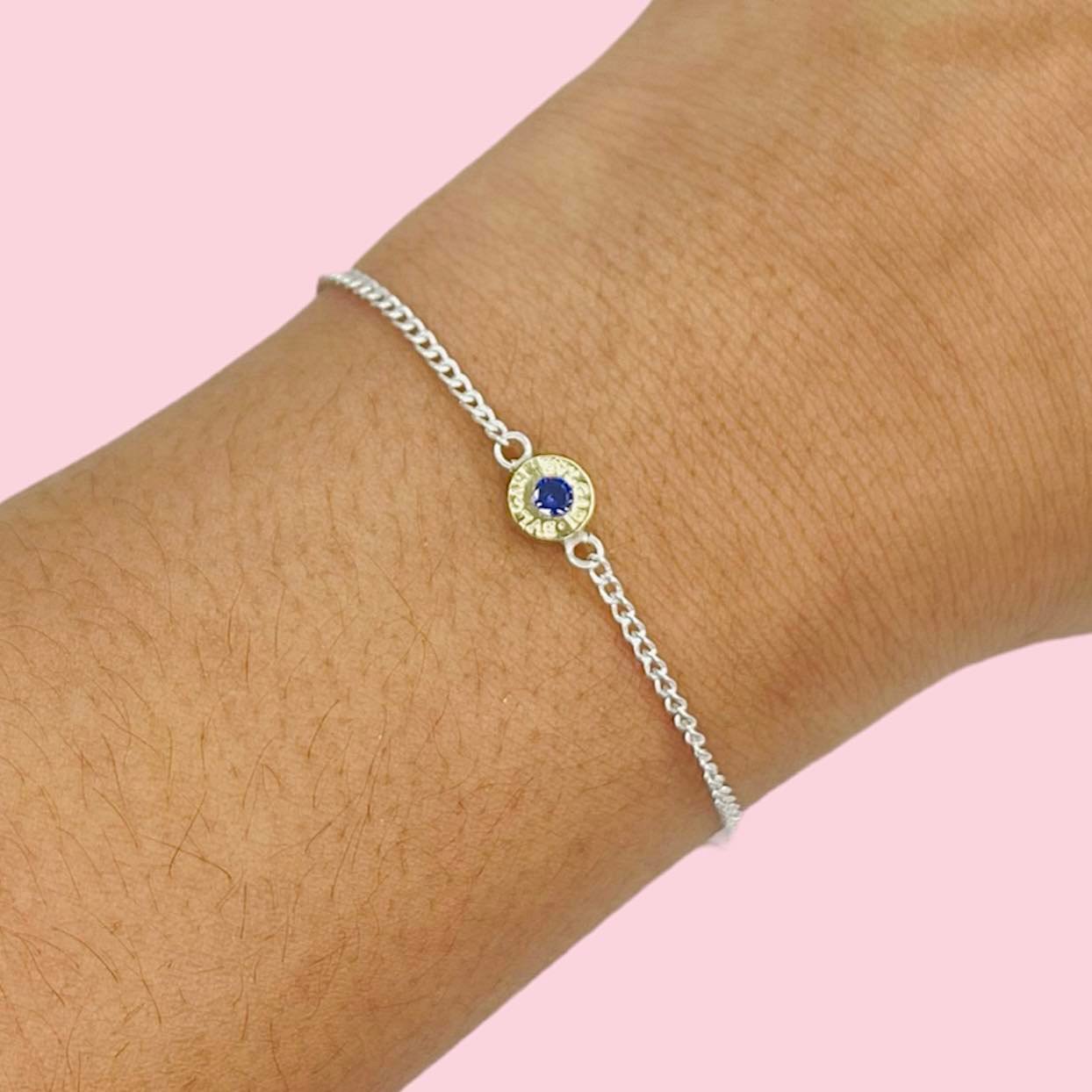 Pulsera Groumet Bvl redondo chico cubic Violeta Plata y Oro