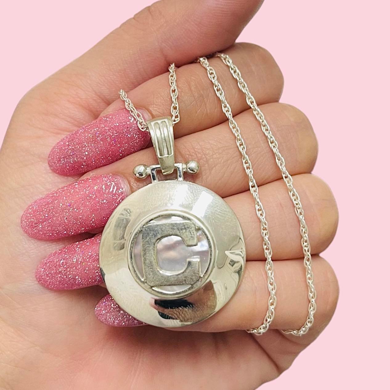 Conjunto Cadena Tourbillon 35 con Dije Nacar chico Inicial C de Plata 925