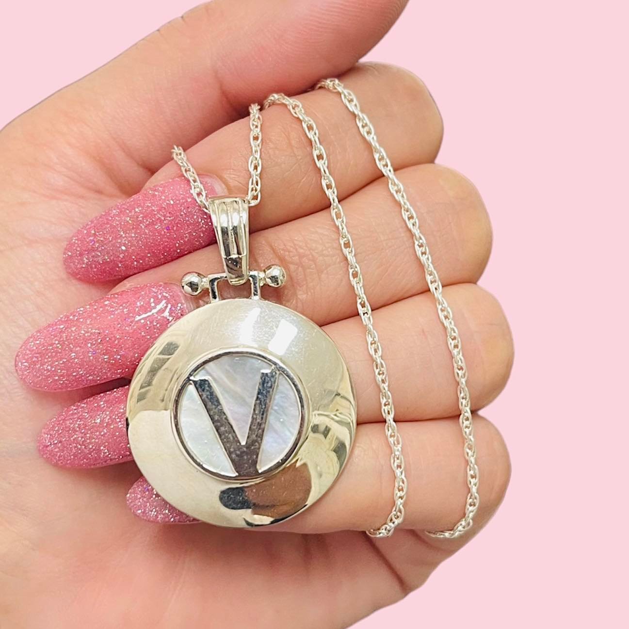 Conjunto Cadena Tourbillon 35 con Dije Nacar chico Inicial V de Plata 925