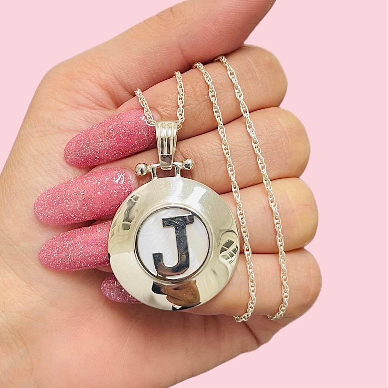 Conjunto Cadena Tourbillon 35 con Dije Nacar chico Inicial J de Plata 925
