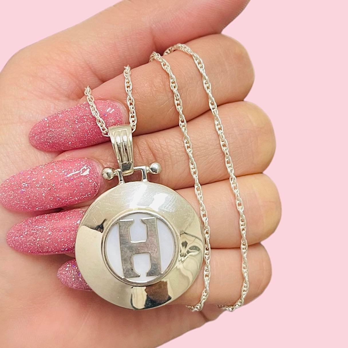 Conjunto Cadena Tourbillon 35 con Dije Nacar chico Inicial H de Plata 925