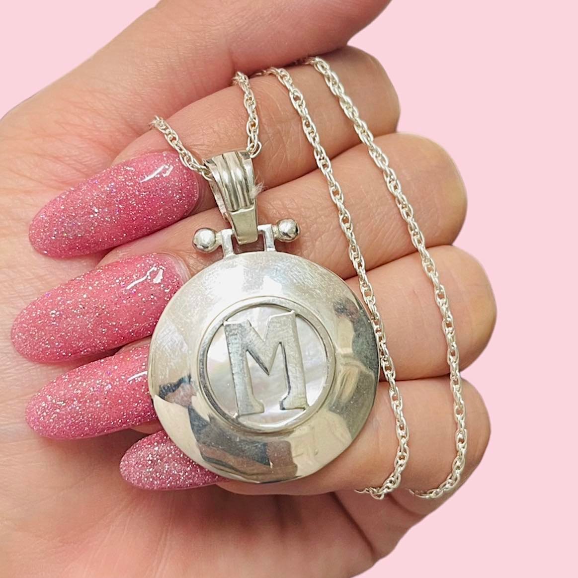 Conjunto Cadena Tourbillon 35 con Dije Nacar chico Inicial M de Plata 925