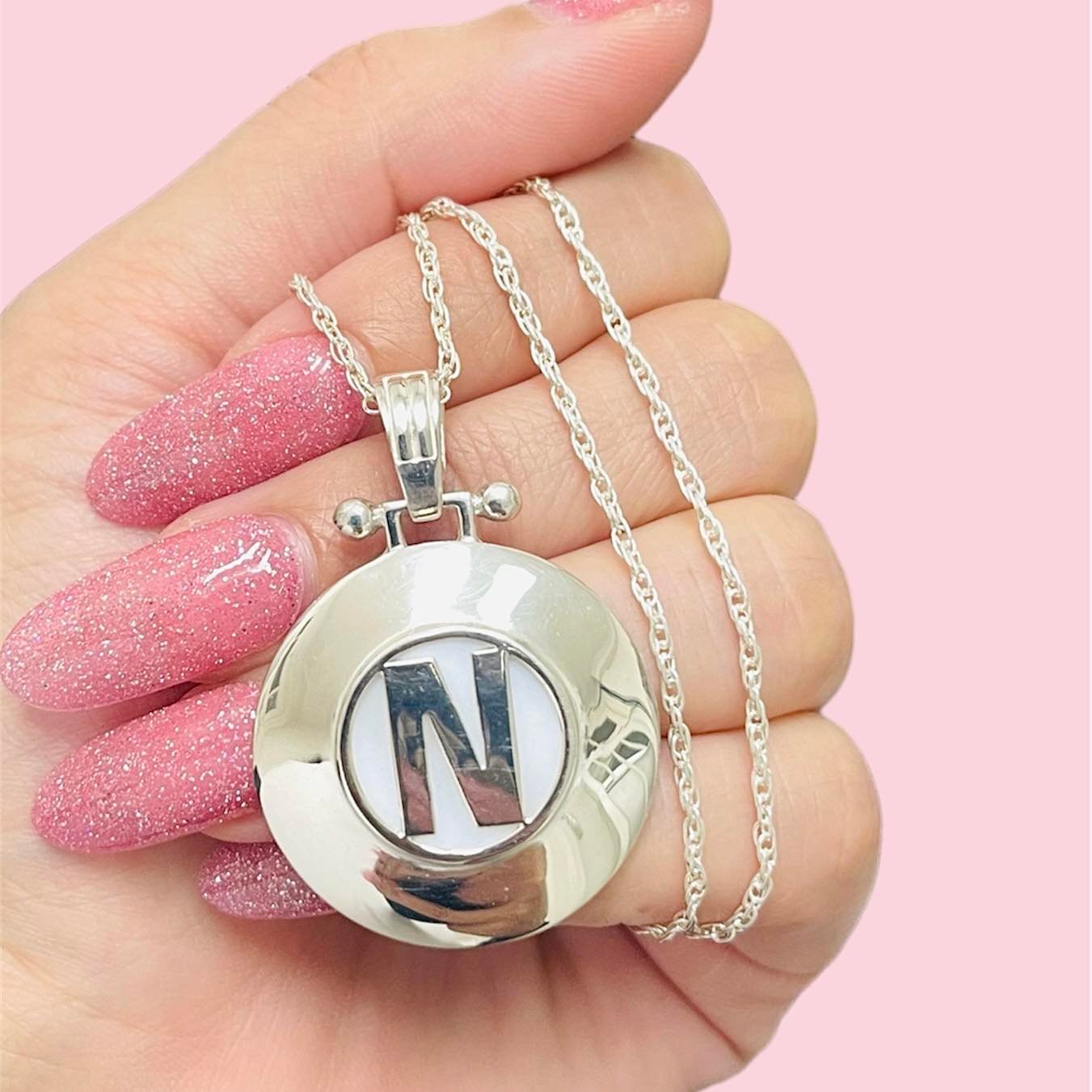 Conjunto Cadena Tourbillon 35 con Dije Nacar chico Inicial N de Plata 925