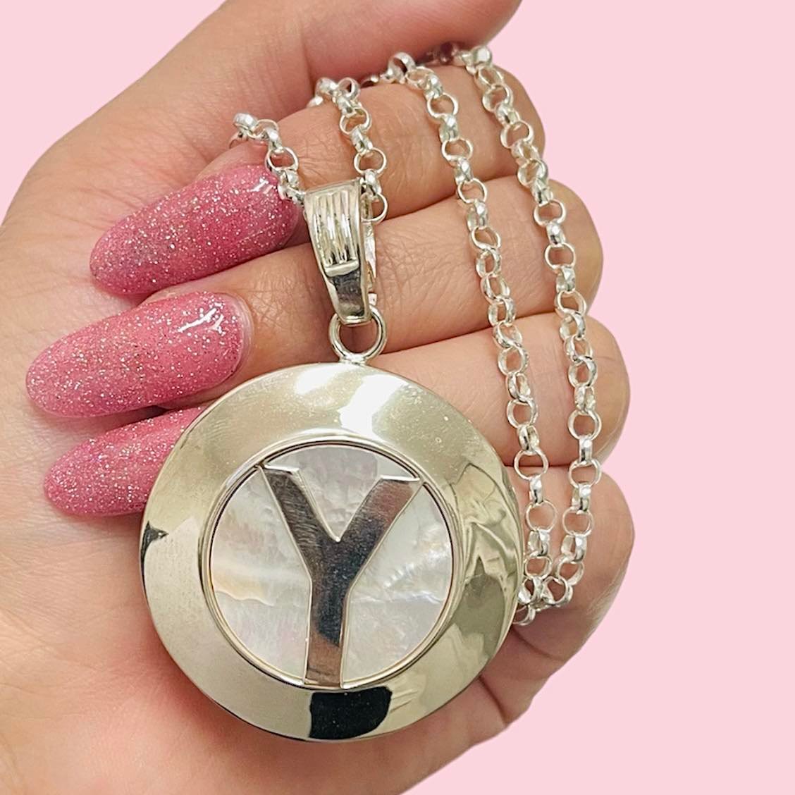 Conjunto Cadena Rolo 0000 con Dije Nacar grande Inicial Y de Plata 925
