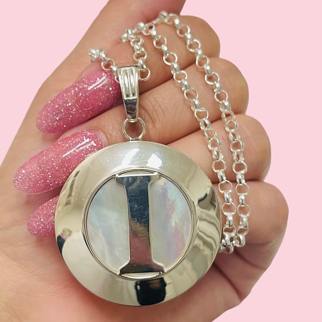 Conjunto Cadena Rolo 0000 con Dije Nacar grande Inicial I de Plata 925