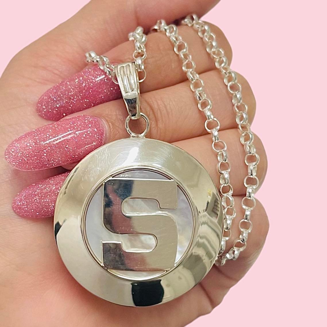 Conjunto Cadena Rolo 0000 con Dije Nacar grande Inicial S de Plata 925