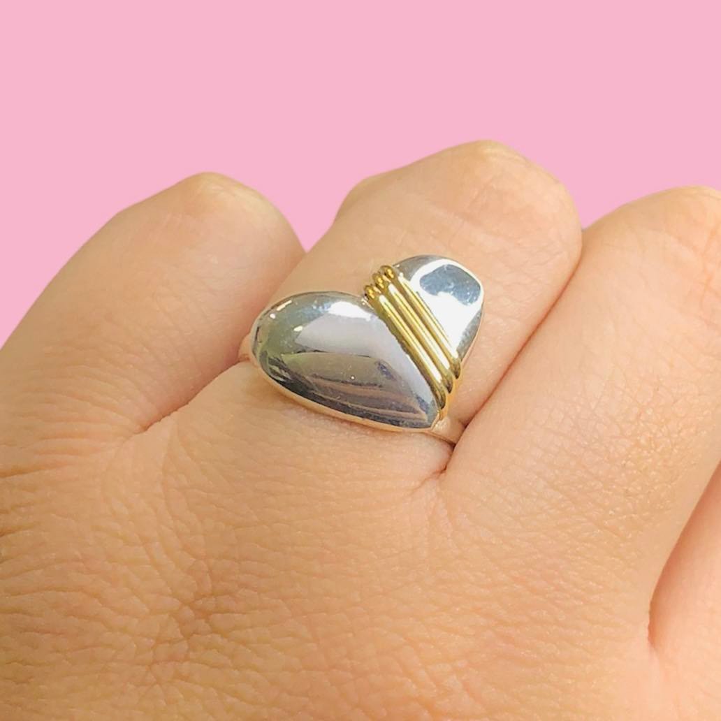 Anillo corazon Bombe 20mm x15mm de Plata y Oro