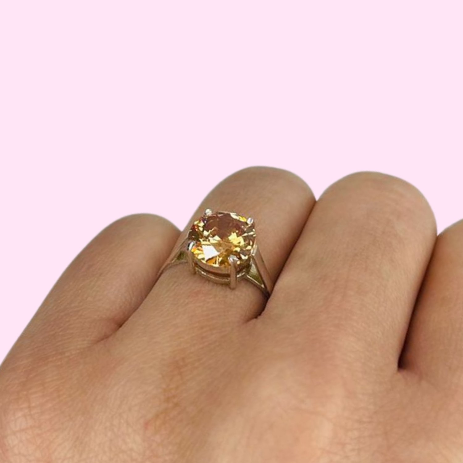 Anillo Compromiso Grande Cubic ambar de Plata 925