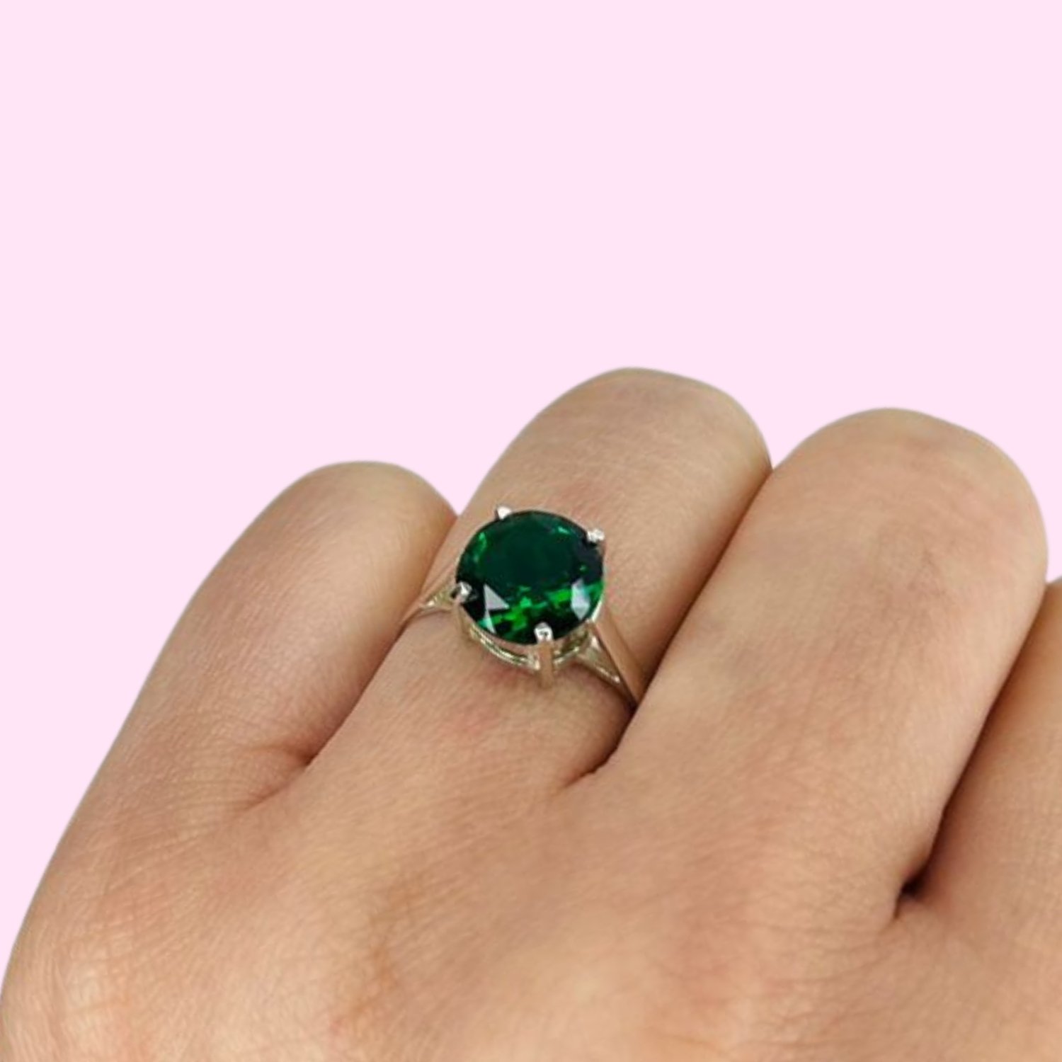 Anillo Compromiso Grande Cubic Verde de Plata 925