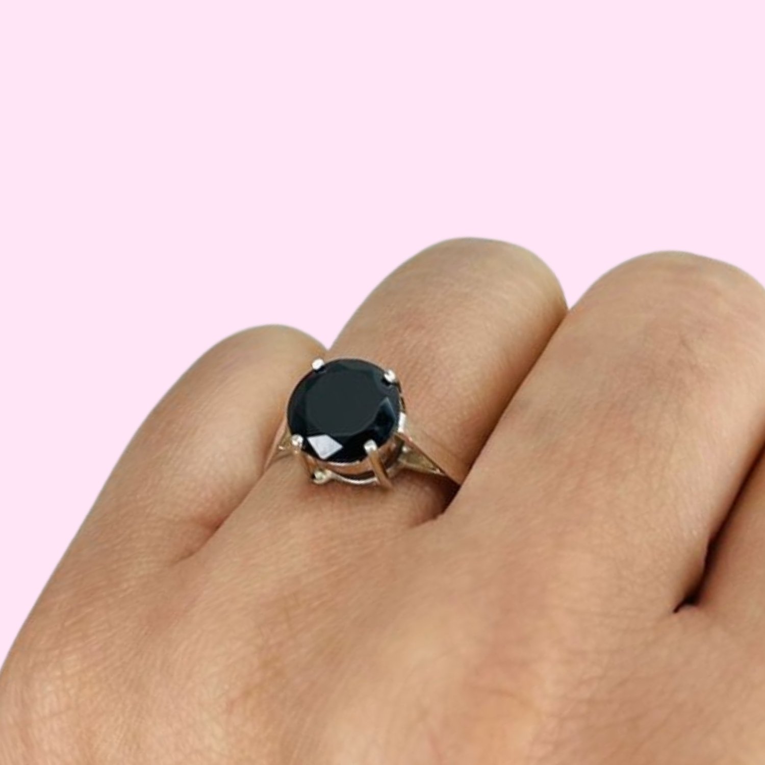 Anillo Compromiso Grande Cubic Negro de Plata 925