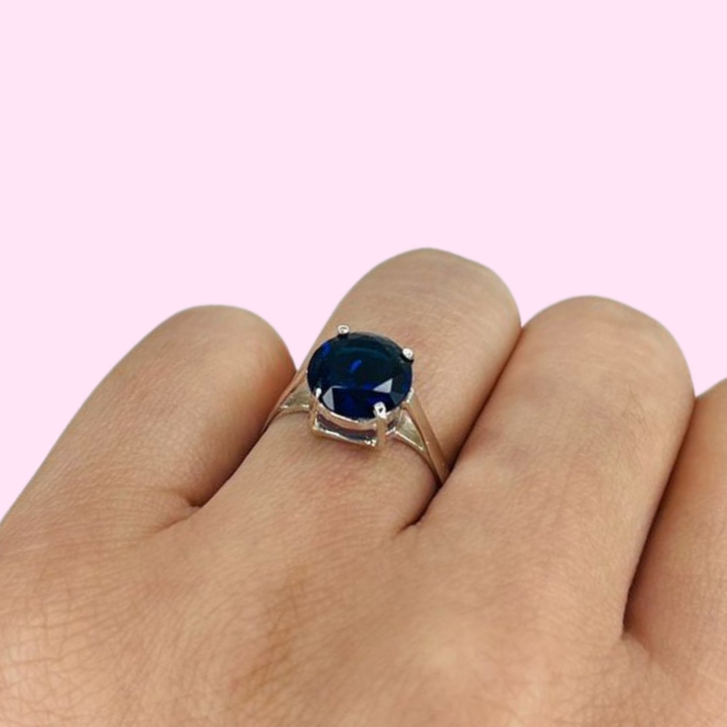 Anillo Compromiso Grande Cubic Azul de Plata 925