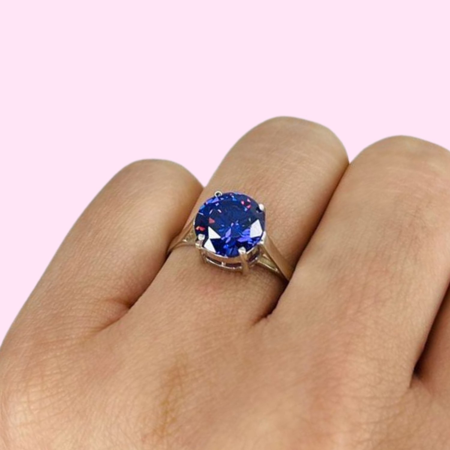 Anillo Compromiso Grande Cubic Violeta de Plata 925