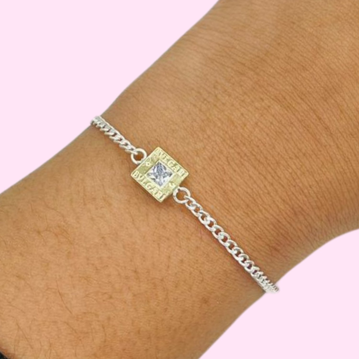 Artículo: PO 027-27Pulsera groumet dije Bvlg cuadrado con cubic encamisado Blanco