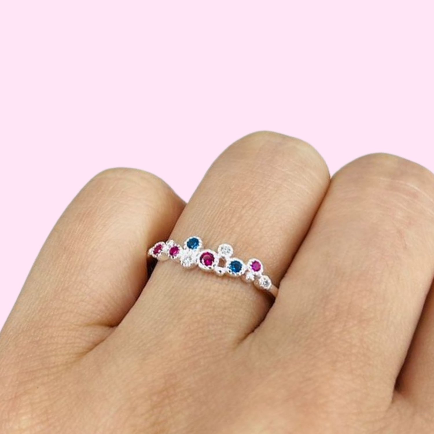 Anillo Burbujas cubic redondo multicolor de Plata 925