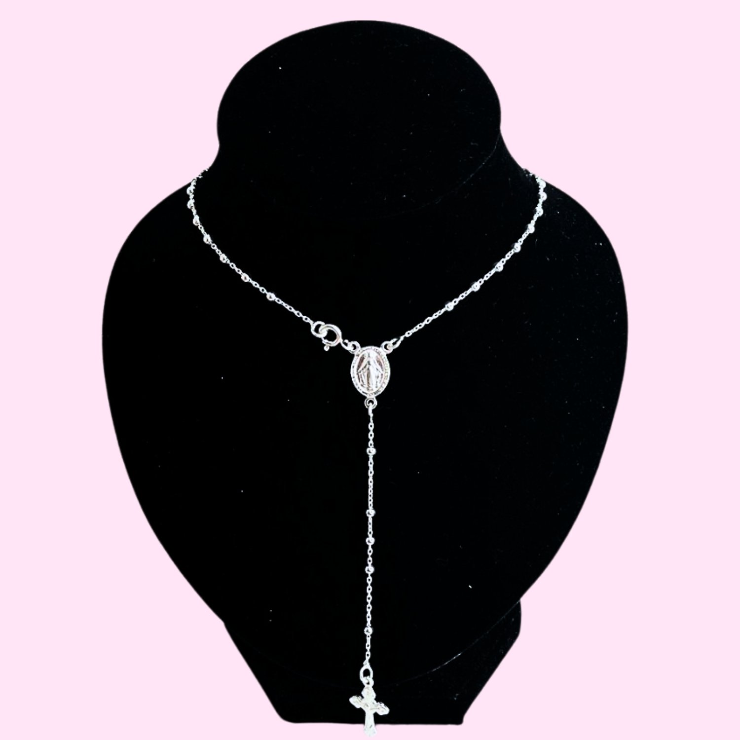 Rosario Virgen Milagrosa con crucifijo colgante Cristo bolitas 2.5mm de Plata 925