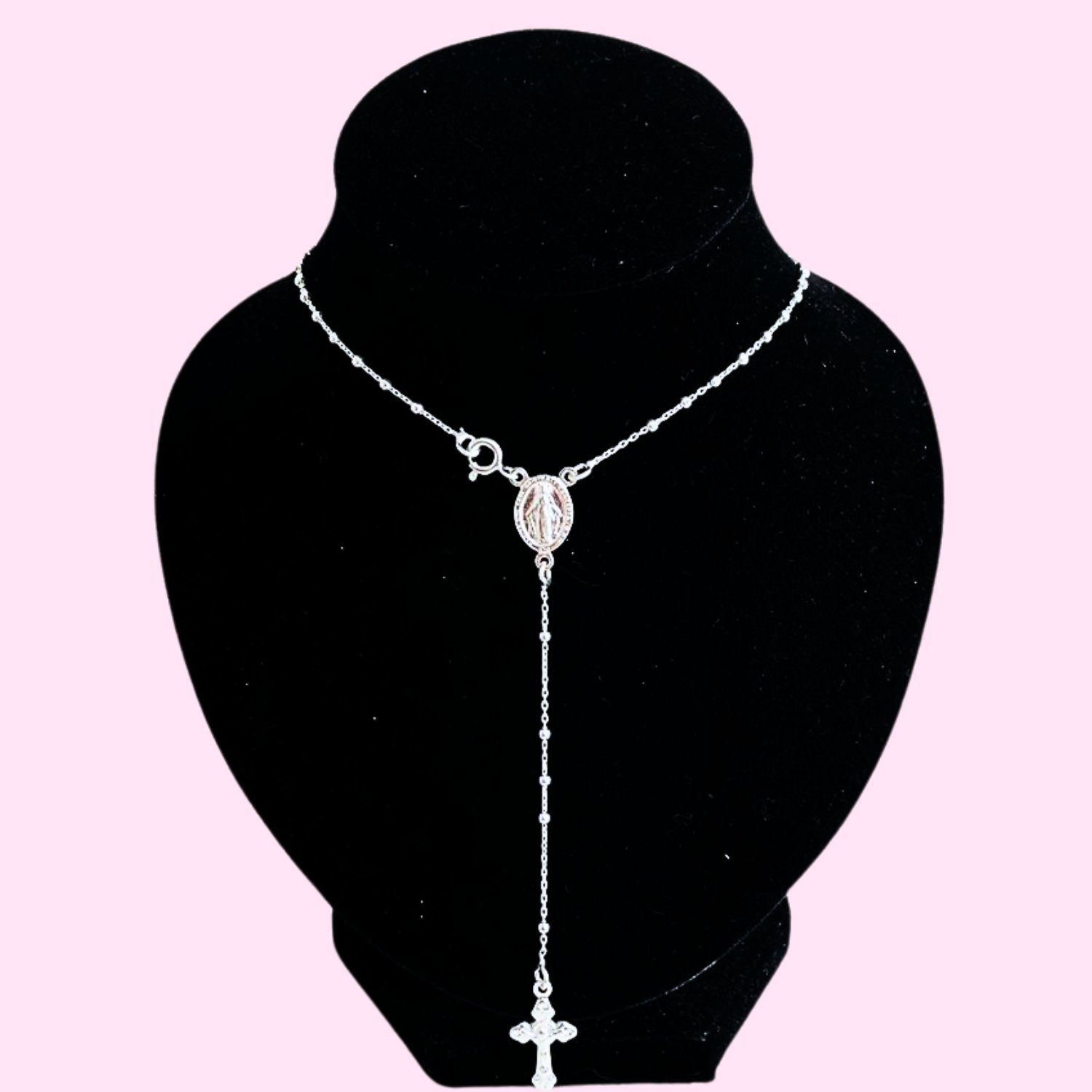 Rosario Virgen Milagrosa con crucifijo colgante Cristo bolitas 2mm de Plata 925