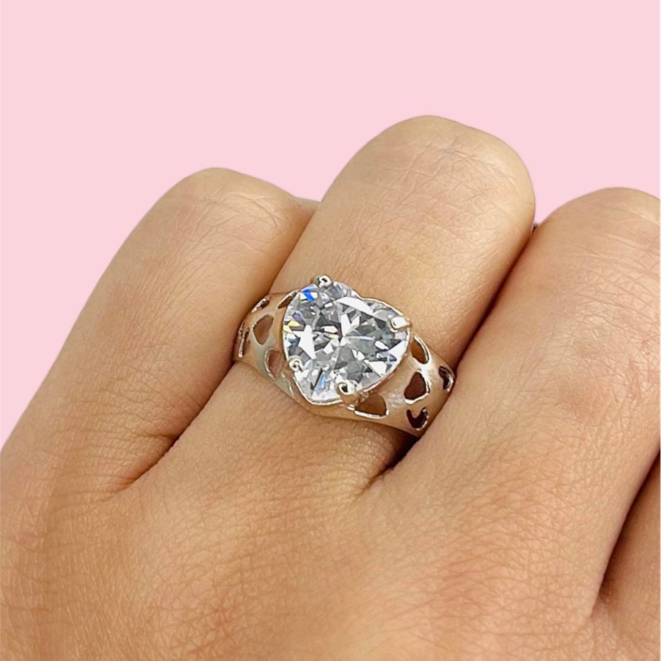 Anillo Corazon cubic blanco con corazones calados de Plata 925