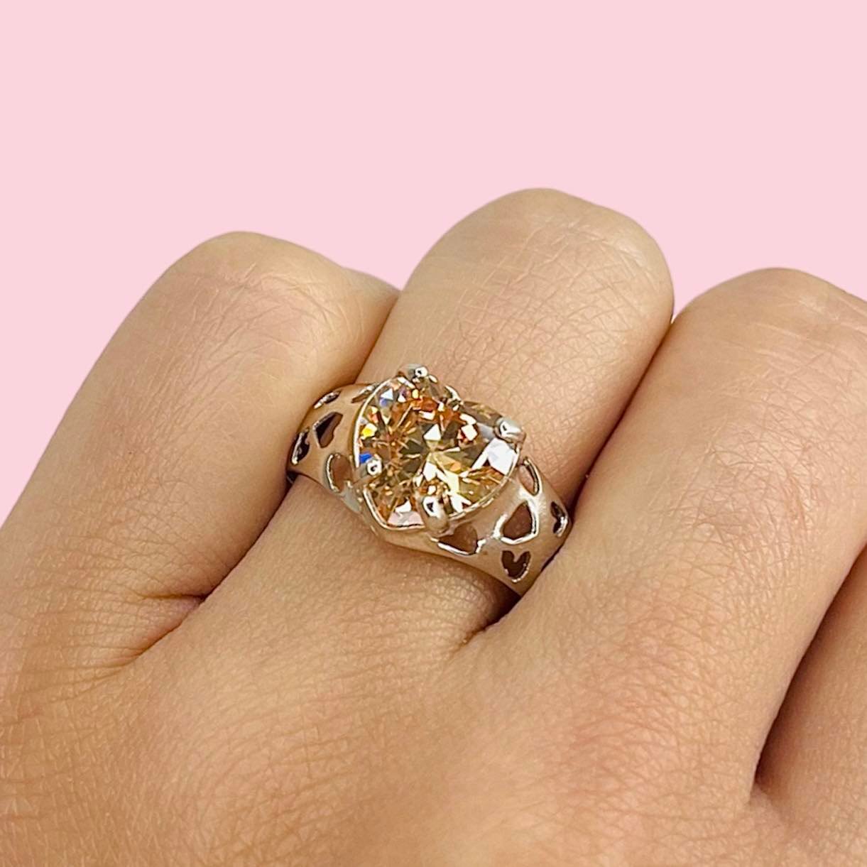 Anillo Corazon cubic Ambar con corazones calados de Plata 925